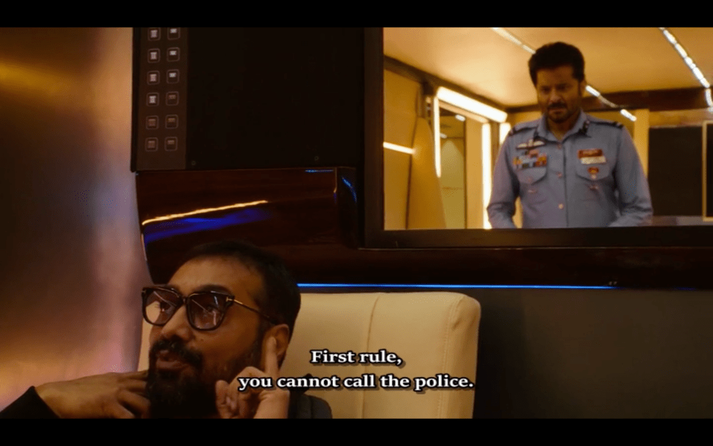As the media splash pictures of the contretemps across the front pages, Anurag is beset by problems, with actors withdrawing from his upcoming film (Nawazuddin Siddiqui in a voice cameo) and backers pulling out. But just when the situation seems dire, Yogita comes up with a plan. Next, Anurag goes onto the set of Anil’s latest film where the actor is finishing early to go home and celebrate his birthday. After forcing his way in to speak to Anil, Anurag manages to convince the star that he has kidnaped his daughter Sonam Kapoor, and that Anil has until sunrise to find her. There are just 3 rules: no police, no outsiders and the camera has to remain on. The hunt is on, and as Anil becomes ever more frantic in his attempts to find his daughter, Yogita keeps the camera keeps rolling while Anurag keeps fanning the flames.
