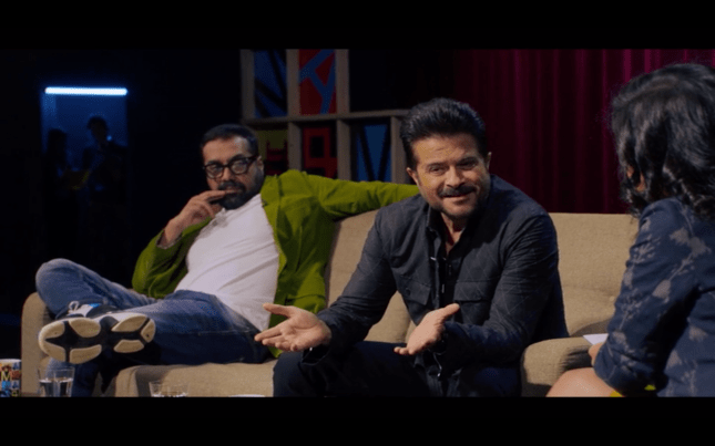 The film starts by introducing Yogita (Yogita Bihani) as a film school student who is recording Anurag for a school project. She follows him with a camera when he is interviewed, along with Anil Kapoor, by Sucharita Tyagi in front of a live audience. Anil is talking about his glory days in numerous hit films while Anurag adds digs about Anil’s recent lack of success. The sniping continues until an audience member asks which is more important, the actor or the director and in the ensuing argument, Anurag throws a glass of water over Anil. It’s brilliantly funny and the various references by each to their respective careers sets the rivalry between the two up beautifully.
