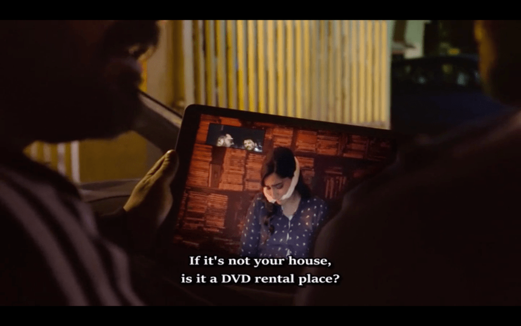 I enjoyed this film much more than I expected. The opening scenes are fantastic and create expectation for a perhaps more nuanced film, but once Sonam is kidnapped and the chase is on, we’re back into more familiar action territory. There is a lull in the middle before the film picks up again, but overall this is in turns funny, shocking, surprising but mostly just entertaining. Be warned though – there is a lot of swearing in this film. It was fun to see Anurag’s DVD library which I remember him talking about at a Q and A session here in Melbourne, and great to see such big Bollywood names such as Boney Kapoor taking part in the action. Other things to look out for are the preponderance of shots featuring images of the actors in mirrors and the glimpses of Jogita and her camera that can be seen reflected in windows, Anurag’s tablet and the car windows. All very meta.