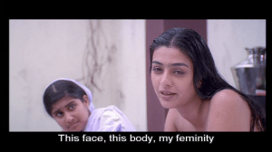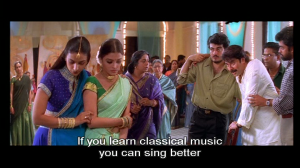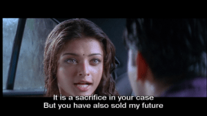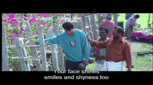 I’ve read that Mani Ratnam wanted these scenes to be beautiful as a contrast to events in the second half, and I find it interesting that his idea of beauty is in the wind and rain that are a constant presence in the village. For me, accustomed to the weather in Ireland, I’d thought that this was supposed to represent the cold attitude of the two families to the romance until I read Baradwaj Rangan’s interview with Mani Ratnam. In Ireland, wind and rain is always cold and miserable, but since visiting Tamil Nadu I can appreciate why gusts of wind and showers of rain would be beautiful in a hot and often dry landscape. Despite knowing this, I still feel chilled when I see the wind whipping Shaila’s veil and skirt around, while the crashing waves and constant rain strike me as cold and gloomy even though I can appreciate the beauty of the landscape.
