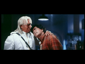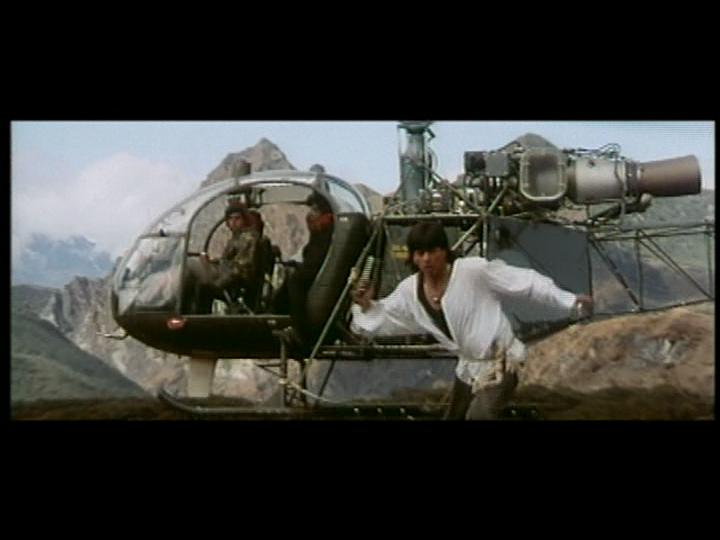 Rekha is awesome throughout. She nails the meek and mild-mannered Aarti, but is so much better as the stunning model out for revenge. Her Jyoti is stardom personified with attitude that simply sizzles off the screen with a sneer sharp enough to draw blood. Rekha takes ownership of all the ridiculous outfits and outlandish hairstyles too, so that when she ends up in black leather and wielding a whip, it seems less an erotic fantasy and more a practical outfit for revenge – easier to get blood off leather I imagine. Kabir Bedi is excellent too in this negative role where he hams it up as a seductive suitor who quickly shows his true colours once the knot is tied. It’s a great performance and who can complain if he spends most of his time by the pool in various stages of undress. I do draw the line though at the needless appropriation of Vangelis Chariots of Fire theme into a tacky song visualising a romp in the pool between Kabir Bedi and Sonu Walia. But for the rest, Kabir is nicely wicked and appropriately charming as he woos Aarti and then Jyoti. Poor Sonu Walia doesn’t have anything like as good a time as her Nandini is a bit of a wet blanket who falls over herself to do whatever Sanjay wants.