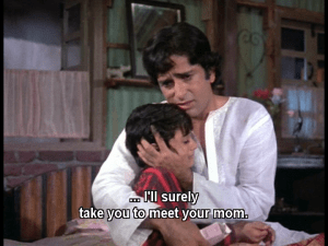 Needless to say Sunita is added to the merry band of thieves who go ahead with another con based on the old ‘holy men walking on water’ scam. This time though they are caught by Police Officer Shiv Kumar (Sunil Dutt), who goes ahead and arrests Vijay and Ravi, even though they are his two younger brothers. Above all else Shiv is a police officer sworn to uphold the law, and that is what he does. Shiv’s character is established early on when he rescues some hostages in a beautifully choreographed action sequence. His wife Sheetal (Rakhee Gulzar) shares the same values although she has a soft spot for Shiv’s two brothers and is altogether more forgiving than her husband. However, once the brothers are released from jail they make a vow to ‘go straight’ and move in with Shiv and Sheetal in their house in Mumbai.
