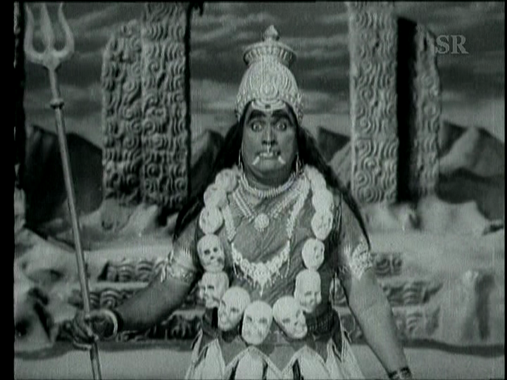 Parvathi (B Saroja Devi) is beautiful and stately and her role requires little more than that. Parvathi is used as a pawn in the game Narada is playing with Ravana, and despite her power she finds herself being carted around from pillar to post. But finally after prompting from the ever helpful sage, she uses her own power of illusion to break free. Apparently Ravana couldn’t see her inner beauty.