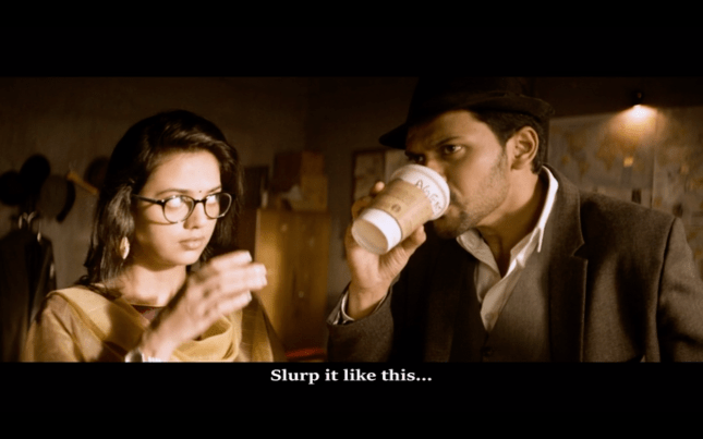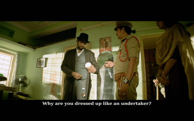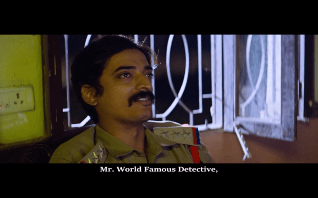 Sai Srinivasa Athreya (Naveen Polishetty) goes by the name Agent and runs the Fatima Bureau of Investigation or FBI for short. For Agent, being a detective is all about the look and the attitude, despite running his business from a small office in the market area of Nellore. He’s teaching the ropes to new recruit Sneha (Shruti Sharma) which mostly consists of asking her to watch a series of classic detective movies and discussing famous literary detectives such as his hero, Sherlock Holmes. Also involved in his instructions are to always carry a take-away coffee cup (actual coffee is optional) and to dress with style and panache. Agent interprets this by wearing a waistcoat, an overcoat and sporting a fedora which do at least serve to make him stand out from the crowd.