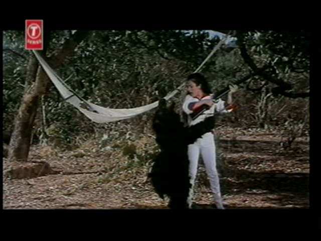 There is a romance track for him, as Kamini (Mandakini – not a snake despite those eyes and some questionable outfits) is driven into his arms by a startling bear attack. She’s a hunting, shooting type of gal from a family of animal hide dealers but clearly life had not prepared her for finding a small person in a bear suit humping her leg.
