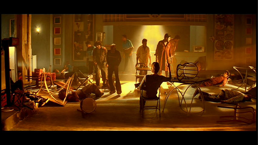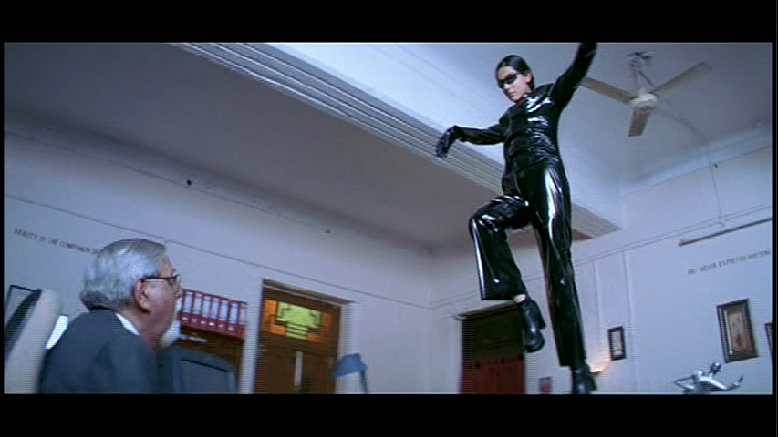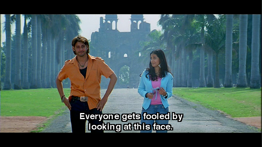 The two girls are the only ones with a real sense of purpose. I quite liked Sameera Reddy. Shailu was not the most realistic character but Sameera has a robust energy that stood up well against Chiranjeevi’s presence and her dodgy wardrobe. She wasn’t afraid to go for it in the dances either. I didn’t necessarily agree with her decision making but I thought Shailu was articulate about what she wanted and where she drew the line. Bhoomika used both of her expressions, and despite having the potentially more substantial role she didn’t really make much of it. Neelu was tortured, threatened, kidnapped, her poor puppy Dandy was the victim of a Fatal Attraction bunny boiler scenario, and yet I barely remember anything about her. I have better recall of her bedroom furnishings, right down to the Australia shaped souvenir on her bedside table. Neelu has reservations but is won over by Sathya’s “revenge is better than happiness” speech. Plus he promised to only kill bad people. Shailu finds out Sathya intends to marry Neelu to get a USA visa but agrees because she loves him…and makes them have a church wedding as a Hindu ceremony is only for realsies. Points for actually having the discussion I guess.
