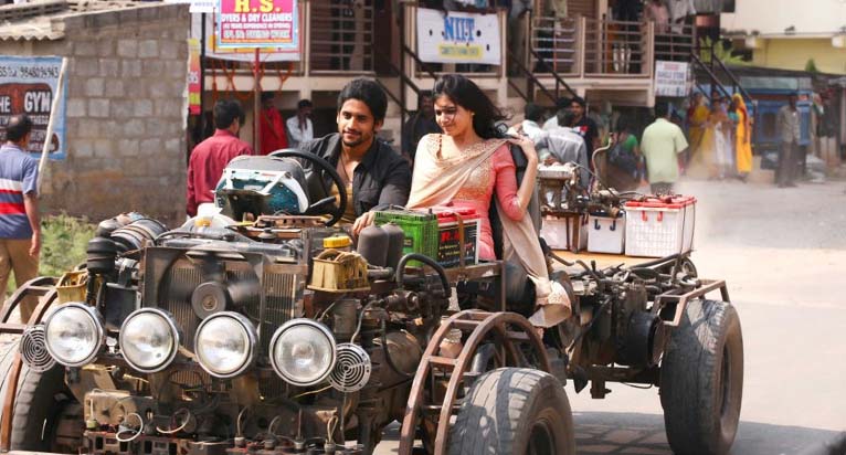 After a big night Sathyanarayan passes out drunk and has a long flashback to the death of his much loved niece, Lavanya. She was a pushy little minx and, sadly, also the child murdered in Pasupathi’s gun demonstration. When Sathya learns that the doctor lied to him about Lavanya’s cause of death and colluded with the gang to prevent a police enquiry, things become more dangerous for everyone. Back in the present day, the doctor’s daughter Neelima (Bhoomika) becomes involved as she seeks justice for her dad who was killed to prevent further blabbing. She ends up in a fake marriage with Sathya so he can get a visa for the USA to go kill Pasupathy.