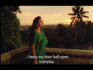 Nivin Pauly has the unusual position (for a hero) of not having much to do in a romance where he also has little say in the proceedings. He only appears as Pooja’s love interest and apart from appearing in her fantasies, periodically appears working in the fields or driving around the local area. Overall, Giri seems too good to be true, but as the character is only seen through Pooja’s eyes, this perhaps isn’t surprising – after all, she considers Giri to be perfect husband material. The few interactions he has with Pooja are characterised by his lack of dialogue, since Pooja usually has plenty to say for both of them, but despite these limitations there is still good development of their relationship as time passes. The romance is completely one-sided, but still very relatable as Pooja pines from afar for someone who seems unattainable despite all her best efforts.